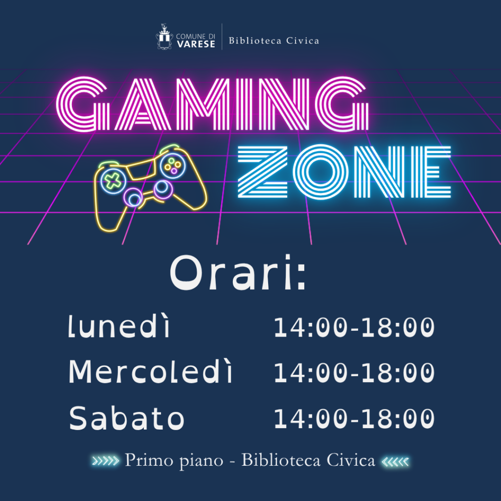 Presso la Biblioteca Civica di Varese continua l’apertura della Gaming zone, uno spazio pensato per accogliere videogiocatori, giocatori di giochi in scatola e lettori di manga e fumetti. Dopo la pausa estiva l’area torna a disposizione del pubblico con una nuova veste grafica e una selezione aggiornata di giochi da tavolo e videogiochi, dai grandi classici ai titoli più recenti.